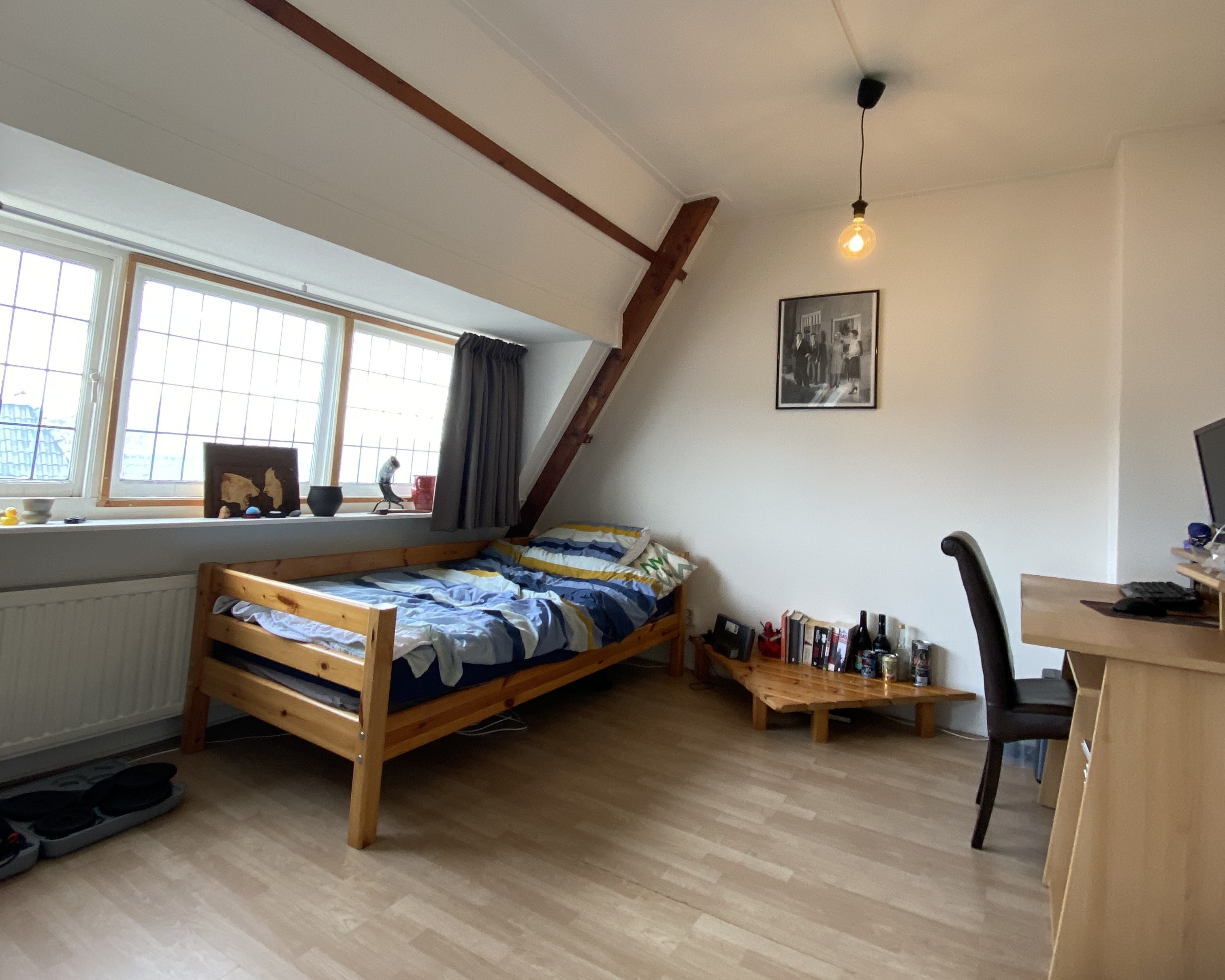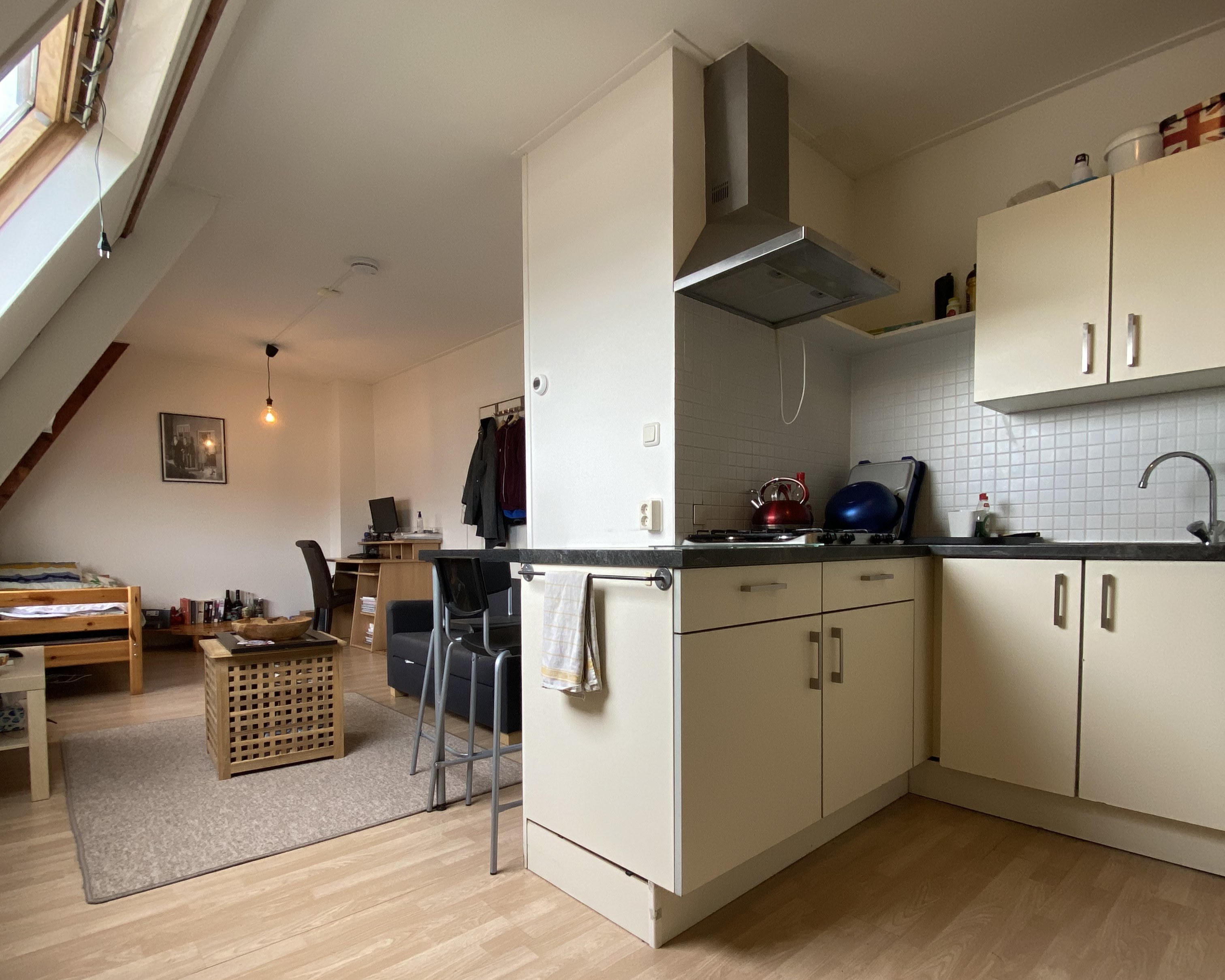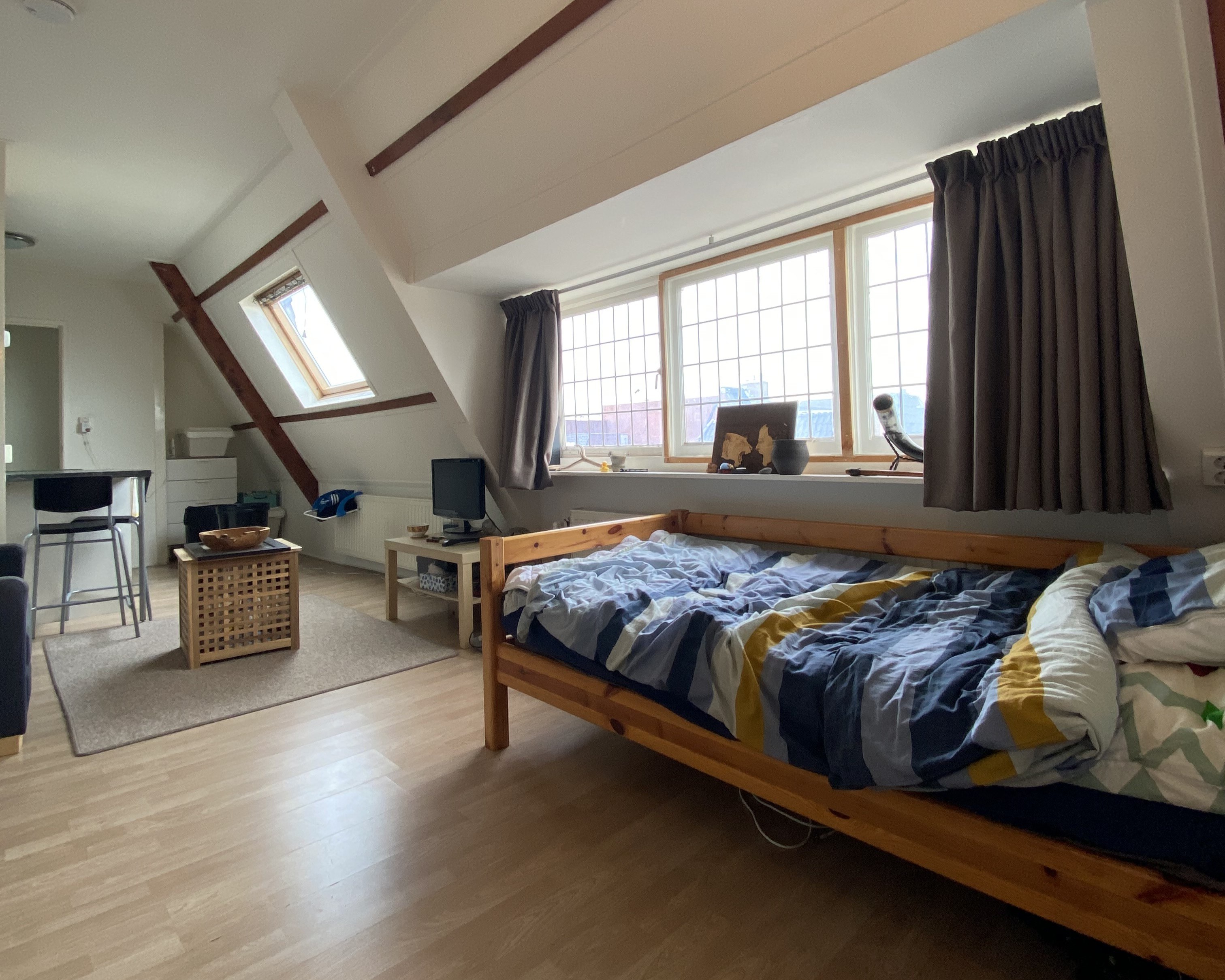 Aan de J.A. Feithstraat is per 1 januari een onzelfstandige studio te huur. Het is ca. 23m² groot en gesitueerd aan de zijkant van het pand met uitzicht op zowel de J.A. Feithstraat, als de Hereweg. Het beschikt over een ruime woon-/slaapkamer met keuken. Ook heeft het een eigen badkamer welke beschikt over een douche en wastafel. Het toilet wordt gedeeld met 1 medebewoner. Ook is er een gemeenschappelijk dakterras aanwezig.